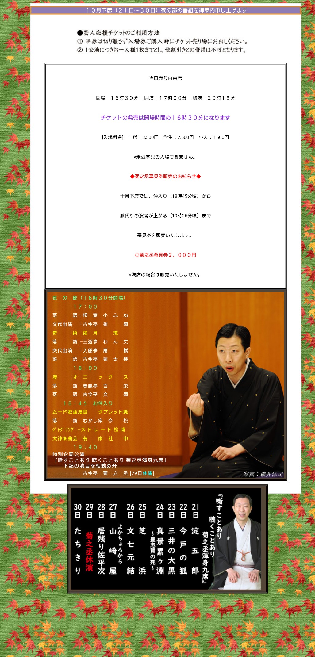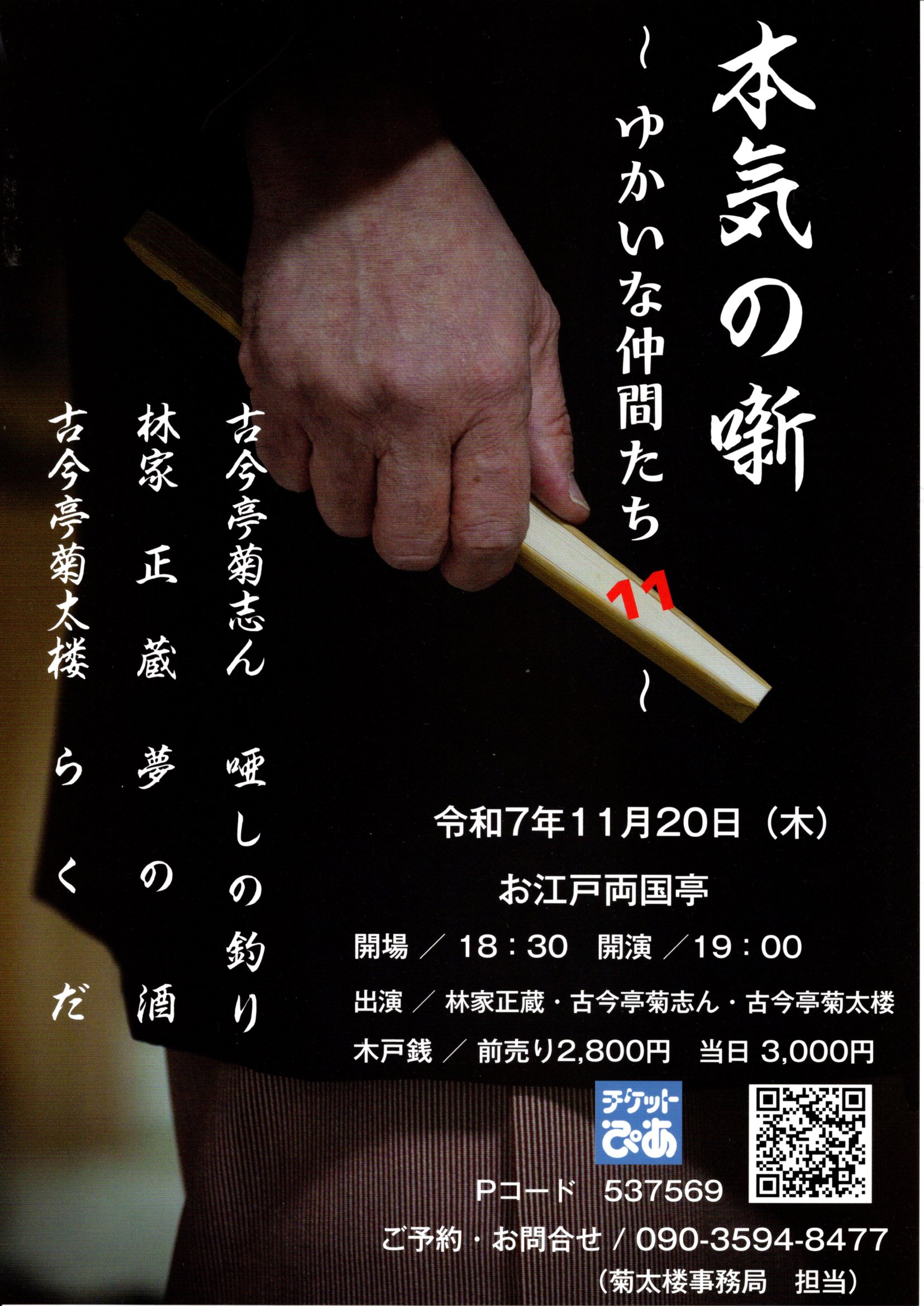 終演後の懇親会は完売となりました。落語と吉原研究の会はまだまだお席がございます。