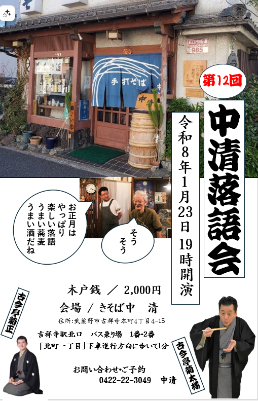 令和8年第一回目の中清落語会、おめでたく盛り上がりましょう 新年会だよ!